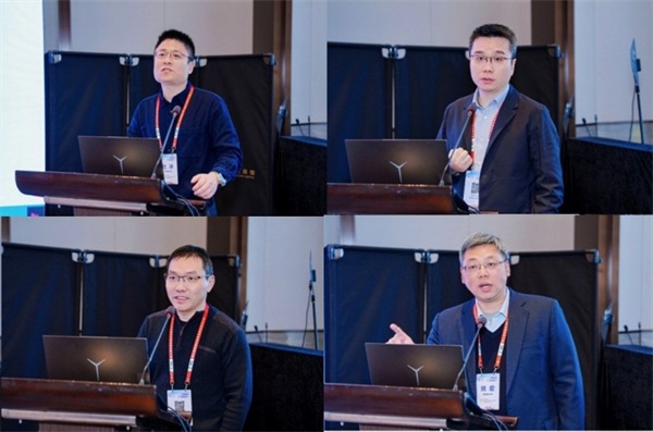 黄波教授(左上)、郑利民教授(右上)、张毅教授(左下)致辞,蒋敬庭教授(右下)主持