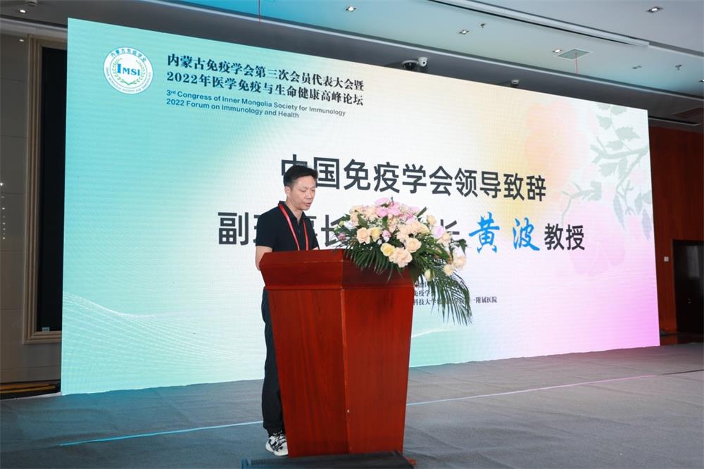 黄波教授亲自莅临大会并代表中国免疫学会向大会召开表示热烈祝贺,高度赞扬内蒙古免疫学会的发展与建设成绩,并表示中国免疫学会将一如既往地大力支持内蒙古免疫学会工作。